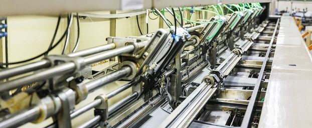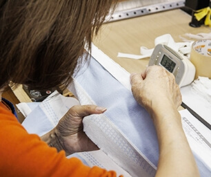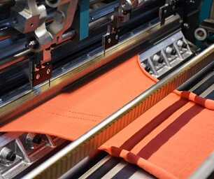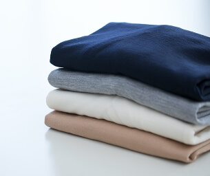 製品の内容に応じて、多種多様なミシンを駆使して、各パーツを縫い合わせます。織物と違って伸縮性の高いニット編地を縫い合わせるのは高い技術力が必要となります。当社は、長年の経験の積み重ねにより、インナーからアウターまで幅広いアイテムを縫製する技術と実績があります。