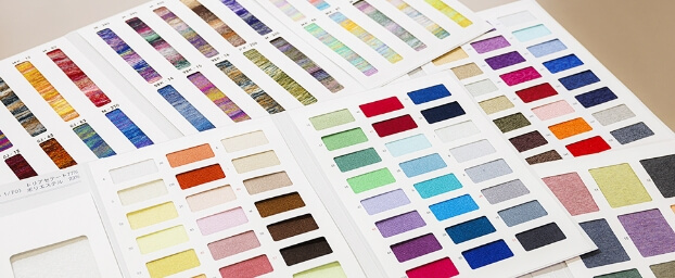 バリエーション豊富なニット用原糸を国内のニットメーカーに販売しています。撚糸工場や染工場と連携し、多品種・少ロット・短サイクルにも対応。
